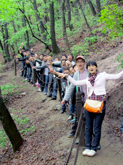 綿綿細(xì)雨并未滯留我們前往的腳步,絲絲的涼意也已沖淡旅途疲憊,一路歡聲笑語(yǔ)更是緩解了大家緊張的心情。到達(dá)崆峒山,遠(yuǎn)山與鄉(xiāng)村在朦朧中忽隱忽現(xiàn),層層疊疊相得益彰,儼然一副唯美的雨中山水畫卷,讓人如癡如醉。我們的隊(duì)伍沿山路拾階而上,陡峭的石階,在巍峨的大山上時(shí)隱時(shí)現(xiàn),既是對(duì)攀登者勇氣的挑戰(zhàn),又是人生理想的誘惑,大家一路上相互扶持,相互幫助,沒(méi)有讓一名同事掉隊(duì)。最終,在大家共同的努力下,我們最終戰(zhàn)勝了巍峨的大山,站在山頂盡情吶喊,高聲歡呼。此次登山活動(dòng)使我們整個(gè)團(tuán)隊(duì)?wèi)?zhàn)勝困難、勇往直前的勇氣得到了很大的增強(qiáng),相信在以后的工作中我們能戰(zhàn)勝更多困難。