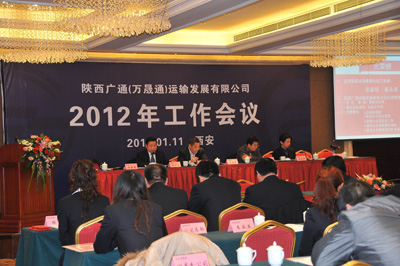 2012年1月11日,陜西廣通運輸發(fā)展有限公司、陜西萬晟通實業(yè)有限公司2012年工作會議在西安悅豪酒店隆重召開。陜煤運銷集團公司總經(jīng)理助理、運輸中心主任譚志軍,陜煤炭運銷集團公司財務部經(jīng)理、廣通公司財務總監(jiān)和學謙,廣通公司董事長、萬晟通公司董事長任曉鵬,廣通公司總經(jīng)理、萬晟通公司董事長助理沈來萬,萬晟通公司總經(jīng)理孟立新,陜煤炭運銷集團公司運輸中心王江,以及廣通和萬晟通公司的員工代表共九十多人參加了此次會議。會議由廣通公司常務副總經(jīng)理張益銘主持。